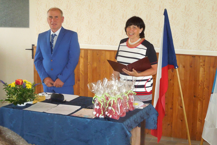 Přítomné děti, jejich rodiče, sourozence, prarodiče a další příbuzné přivítali starosta obce pan Miroslav Kučera a místostarostka paní Iva Uchytilová.