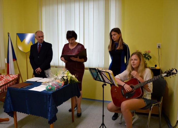 Přítomné děti, jejich rodiče, sourozence, prarodiče a další příbuzné přivítali starosta obce pan Miroslav Kučera a místostarostka paní Iva Uchytilová. Místostarostka představila ty, kterých se slavnost týkala a starosta popřál dětem i jejich rodičům mnoho společného štěstí. O kulturní vložku se postarala písecká děvčata, Míša Dušková a Žaneta Pihýrová, která přítomným zazpívala za kytarového doprovodu Žanety.