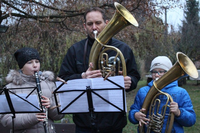 Během setkání nám zahráli na své nástroje vánoční melodie malí i velcí muzikanti. Pro zahřátí nám paní Kuklová připravila teplý čaj pro děti a vylepšený pro dospělé. Paní Pižlová s paní Chladovou přinesly chutné buchtičky obalené v sirobu a perníku a z měnické pekárny doplnila sortiment jejich vánočka.