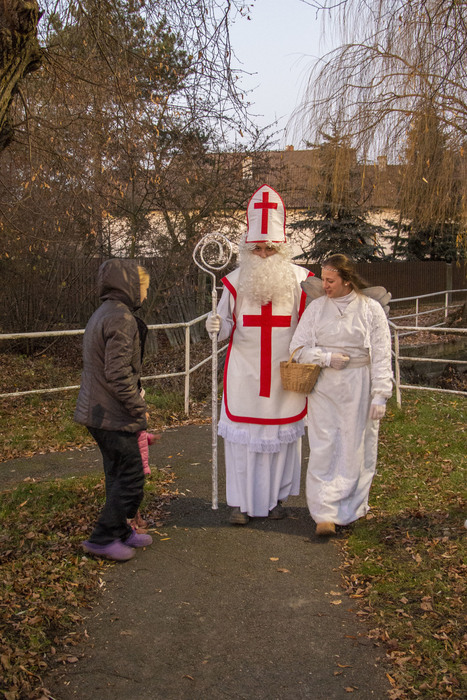 Také dorazil Mikuláš s andělem, který měl pro děti košík cukrovinek.